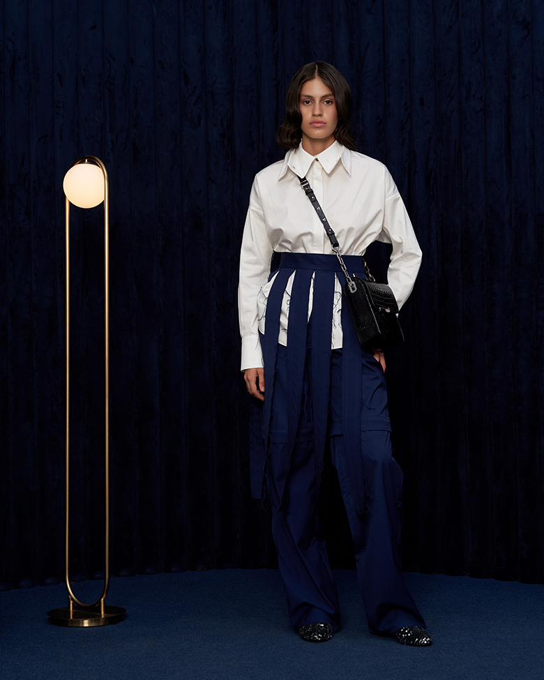 Предмет натхнення – вода, як стихія. Тому колекція виконана у глибоких синіх відтінках; виробам притаманні прямі розслаблені силуети, а фурнітура виконана з натуральної мушлі.