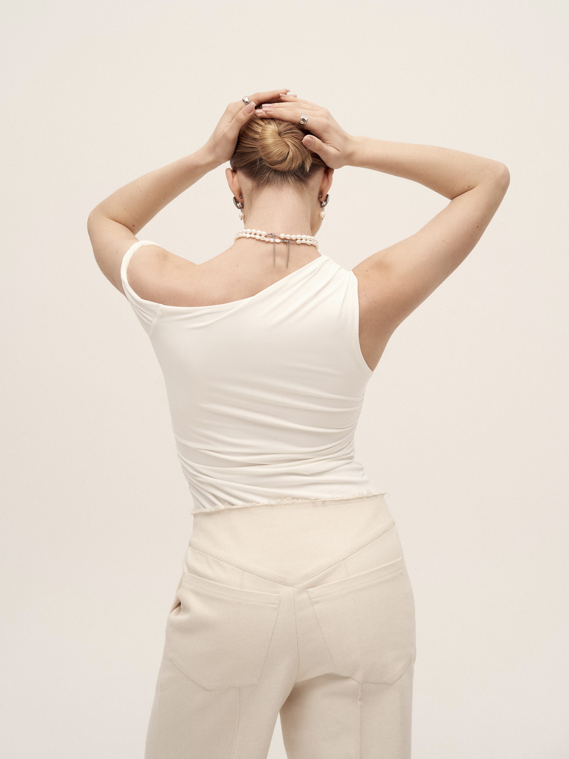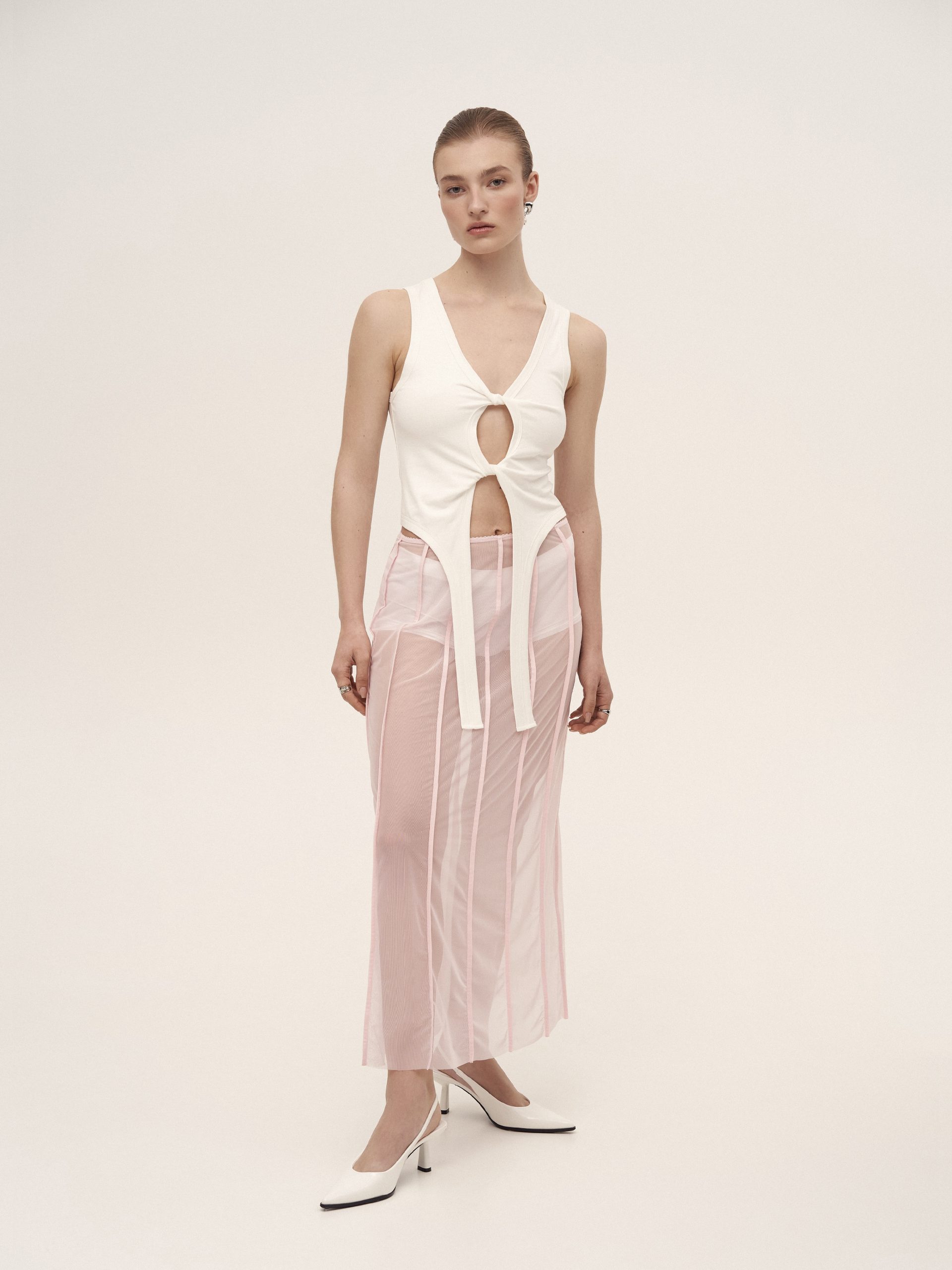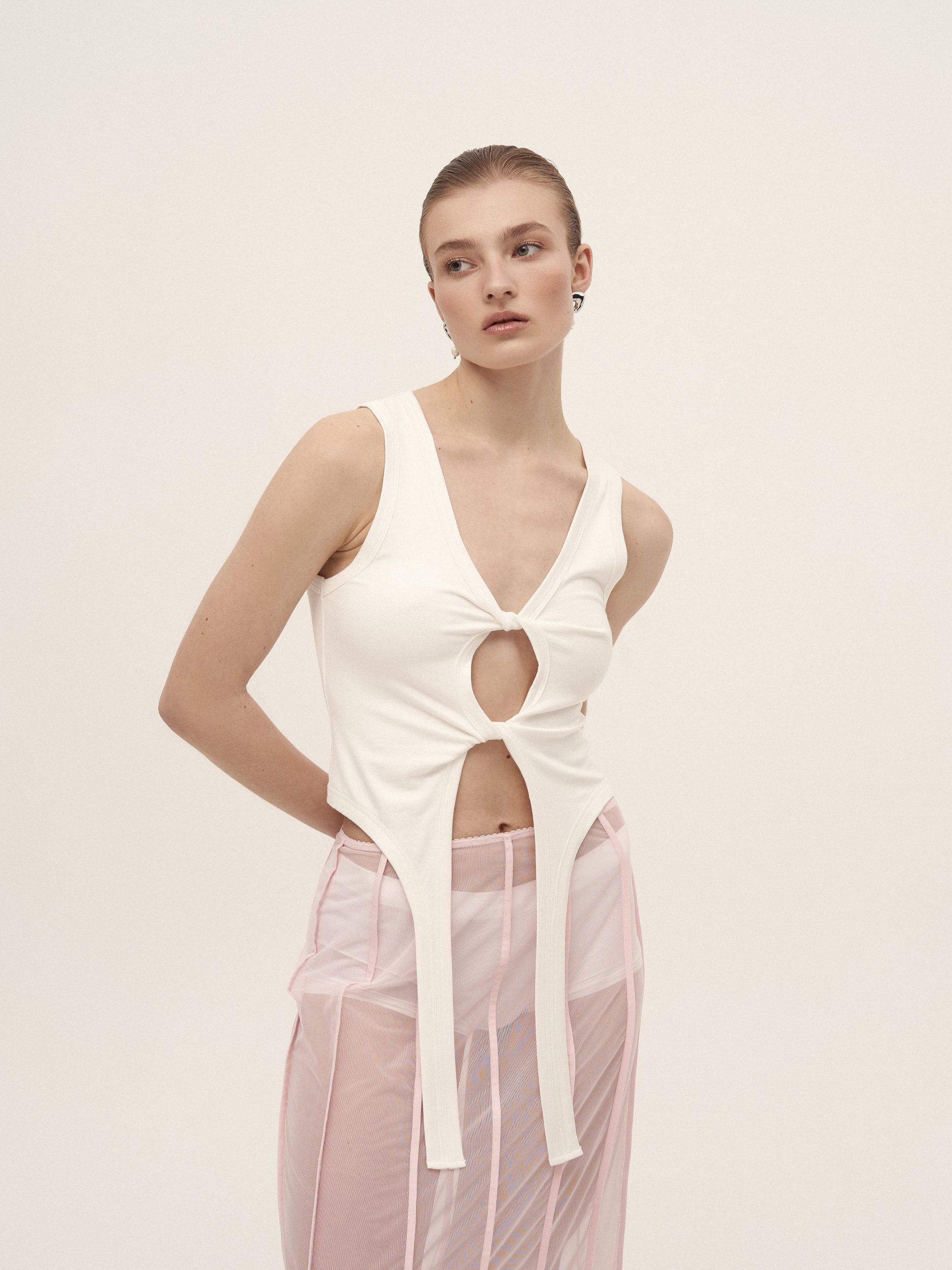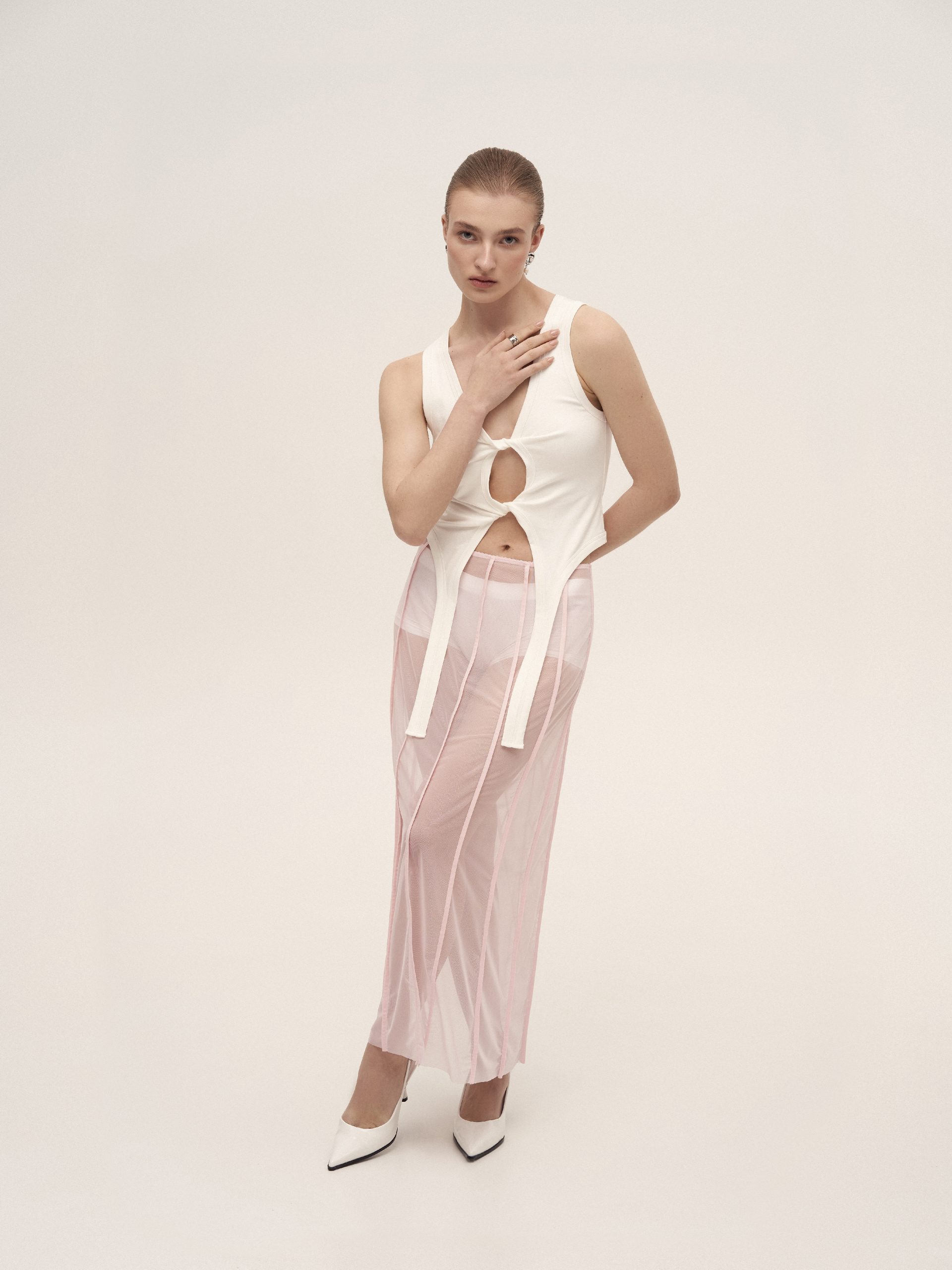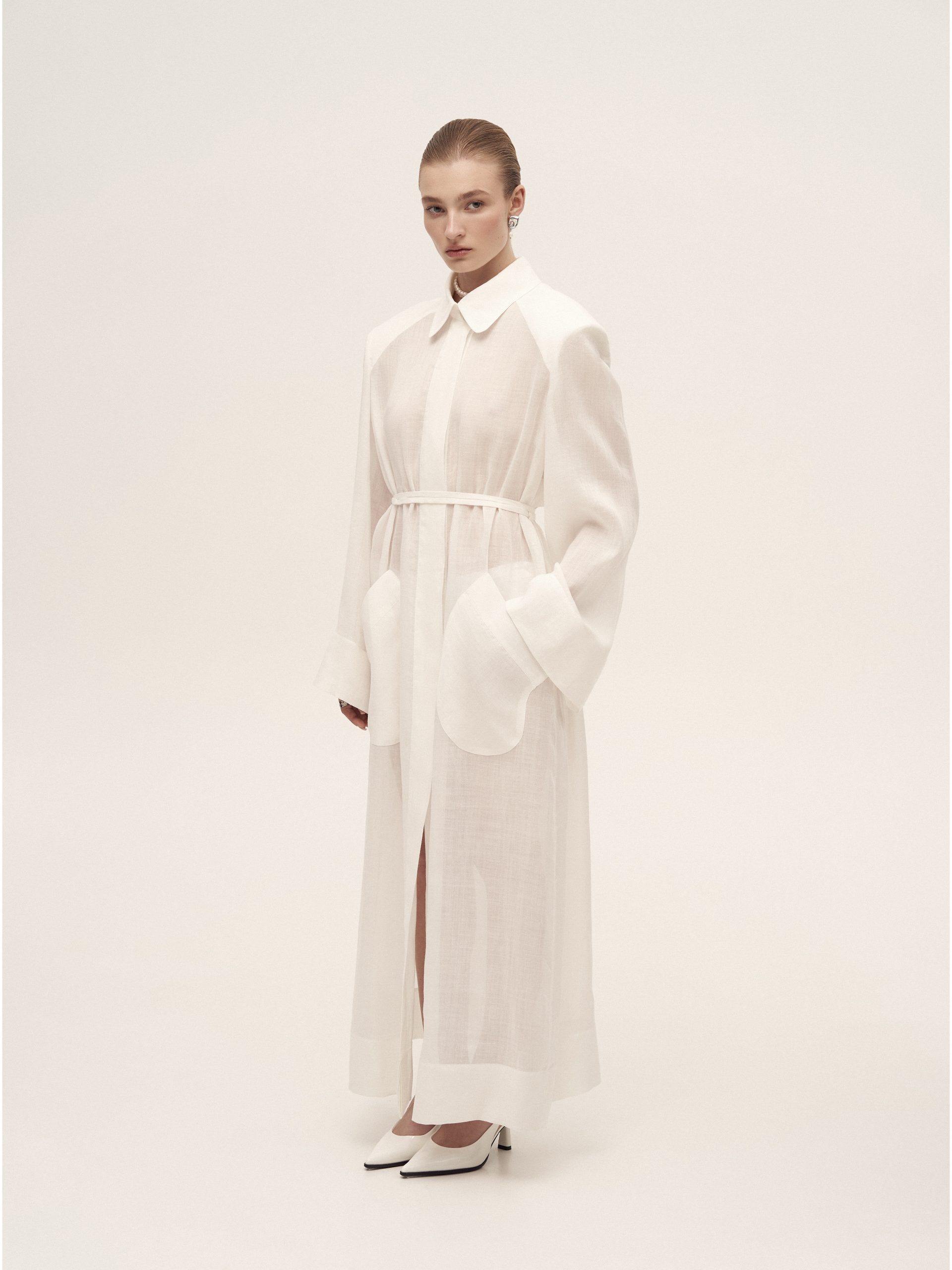 До капсули увійшли 12 виробів, які будуть доречними як для простих днів, так і для особливих вечорів: літній тренч з кропиви, бавовняний брючний костюм, шовкова блуза, напівпрозорий топ, спідниці з трикотажу, боді-купальник в базових кольорах, віскозна майка та сукні різних довжин.
